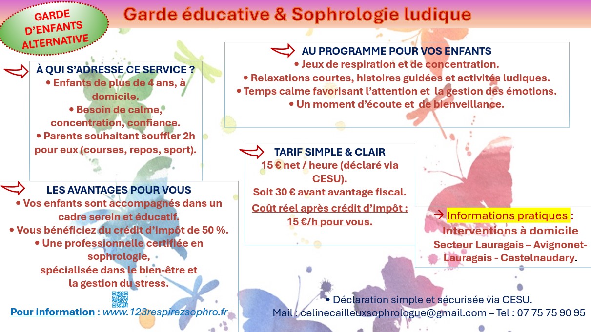 Garde éducative & sophrologie ludique à domicile (avantages CESU)